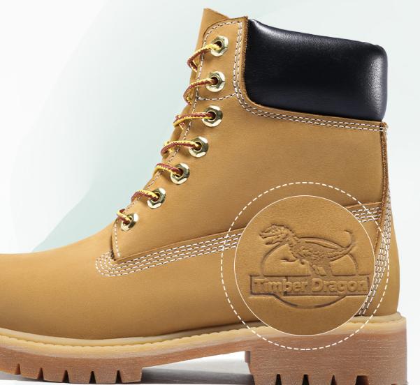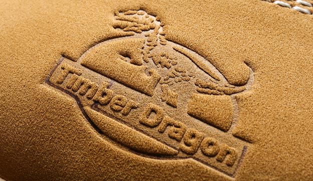 不得不說,侏羅紀(jì)、恐龍……都是人們印象中有野性的詞匯,而設(shè)計師為了突出鞋子的野元素,在鞋面上大膽的運用了鋼印視覺圖案—TimberDragon的大標(biāo)logo,這個設(shè)計仿佛給鞋子注入了霸王龍的DNA,從里到外透露著侏羅紀(jì)時期的那種霸王龍野味。