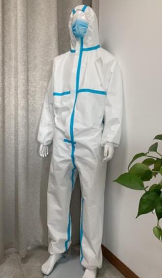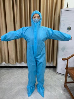 一次性無紡布防護(hù)服隔離衣藍(lán)色白色含帽子和鞋套