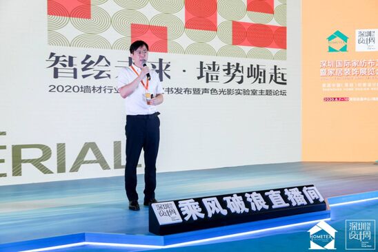 發(fā)布會現(xiàn)場首先由《“智繪未來,墻勢崛起”墻材行業(yè)發(fā)展綠皮書》的總策劃,深圳家紡家居展組委會主任蕭健承先生做了綠皮書的深度解讀,從市場、營銷、智造、模式、流行等方面去條剝縷析墻材行業(yè)的萬變和風(fēng)云,并高度評價了綠皮書對于推動產(chǎn)業(yè)健康、持續(xù)發(fā)展的價值,同時多角度、多視角對墻面材料的未來走向、愿景、趨勢進(jìn)行了一系列的前瞻和預(yù)測。