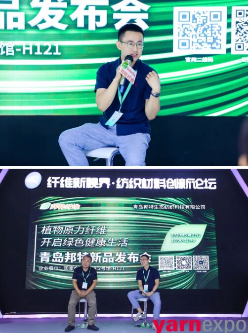 2020年9月23日,yarnexpo2020中國(guó)國(guó)際秋冬紗線展開幕當(dāng)天,由中國(guó)化學(xué)纖維工業(yè)協(xié)會(huì)指導(dǎo),青島邦特生態(tài)紡織科技有限公司主辦的“植物原力纖維,開啟綠色健康新生活——邦特纖維2020新品發(fā)布會(huì)”在上海國(guó)家會(huì)展中心(上海)8.2號(hào)館舉辦。中國(guó)棉紡織行業(yè)協(xié)會(huì)會(huì)長(zhǎng)朱北娜、中國(guó)化學(xué)纖維工業(yè)協(xié)會(huì)副會(huì)長(zhǎng)陳新偉、中國(guó)棉紡織行業(yè)協(xié)會(huì)秘書長(zhǎng)李杰、邦特纖維總經(jīng)理山傳雷等領(lǐng)導(dǎo)嘉賓,以及紡織化纖產(chǎn)業(yè)鏈上下游相關(guān)企業(yè)代表、品牌商、采購(gòu)商及新聞媒體等參加發(fā)布會(huì)。本次發(fā)布會(huì)以線上直播+線下發(fā)布同步進(jìn)行,在纖維新視界直播間“云端”,來自天南海北的業(yè)界朋友同期觀看了發(fā)布會(huì)。