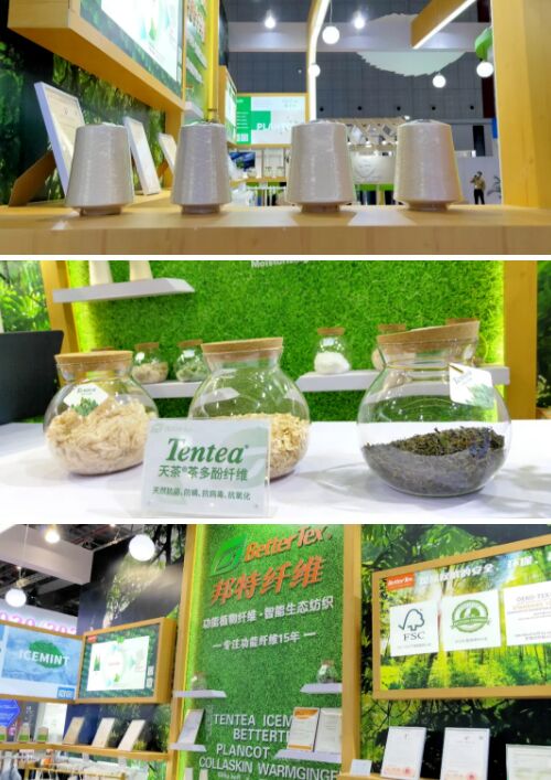 冰薄荷® 纖維,采用高科技植物萃取技術(shù)萃取薄荷中的有效成分,與天然木漿共混而成,具有抗菌消臭、天然涼感、植物防螨等特性;蘆薈®纖維,顏色天然,內(nèi)部均勻分布著蘆薈活性成分,有顯著的抗菌,護(hù)膚和保濕功能,與合成纖維混紡可以改善混紡纖維的可紡性,織物穿著健康舒適,廣泛應(yīng)用于嬰童、家紡市場(chǎng)、內(nèi)衣等行業(yè);暖姜®纖維,取自天然植物—姜,具有天然草本抗菌及吸濕發(fā)熱功能;天茶®茶多酚纖維,作為一種新型功能性再生纖維素纖維,富含茶多酚、氨基酸等有效物質(zhì),具有抗菌、抗氧化、抗病毒等功能;TEMPSENSE®智能調(diào)溫纖維,以微膠囊—包覆相變材料技術(shù)為依托,以潛熱交換的方式吸收或釋放熱量,雙向調(diào)節(jié)肌膚微環(huán)境溫度,使人體處于舒適的溫度范圍;collaskin™膠原蛋白纖維,將深海魚的魚鱗、魚皮等可再生資源,通過高科技萃取加工技術(shù)提取膠原蛋白,并將其與天然木漿混合而制得的一種天然環(huán)保含蛋白纖維,產(chǎn)品通過美國(guó)SCS全球認(rèn)證服務(wù)—回收成分認(rèn)證。
