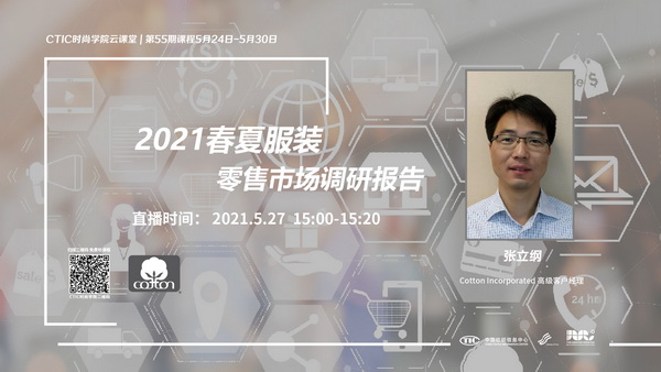 5月27日,Cotton Incorporated將攜手中國女裝面料流行趨勢研究院,通過“CTIC時(shí)尚學(xué)院”在線直播平臺發(fā)布《2021春夏服裝零售市場調(diào)研報(bào)告》。本次報(bào)告,Cotton Incorporated高級客戶經(jīng)理張立綱先生將從疫情帶來的擔(dān)憂、疫情引起的健康保健考量、可持續(xù)性的關(guān)注三個(gè)方面展開,深度解讀疫情帶給消費(fèi)者以及服裝零售市場的深刻影響,闡析紡織服裝企業(yè)的材料應(yīng)用與產(chǎn)品開發(fā)方向。