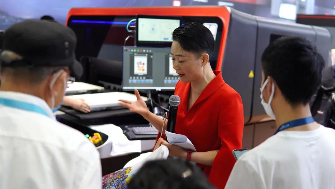 眾多媒體在ITMA展會(huì)現(xiàn)場(chǎng)見證漢印新品發(fā)布