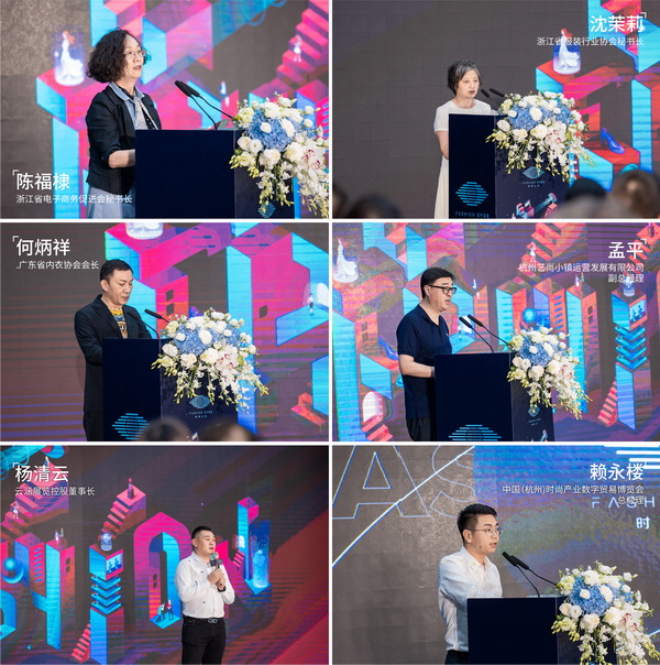 7月8日下午,以“見(jiàn)證·新生”為主題的2021中國(guó)【杭州】時(shí)尚產(chǎn)業(yè)數(shù)字貿(mào)易博覽會(huì)、全球互聯(lián)網(wǎng)時(shí)尚周新聞發(fā)布會(huì)在杭州隆重舉行。浙江省電子商務(wù)促進(jìn) 會(huì)秘書長(zhǎng)陳福棣、浙江省服裝行業(yè)協(xié)會(huì)秘書長(zhǎng)沈茉莉、廣東省內(nèi)衣協(xié)會(huì)會(huì)長(zhǎng)何炳祥、杭州藝尚小鎮(zhèn)運(yùn)營(yíng)發(fā)展有限公司副總經(jīng)理孟平、云涵展覽控股有限公司董事長(zhǎng)楊清云、中國(guó)(杭州)時(shí)尚產(chǎn)業(yè)數(shù)字貿(mào)易博覽會(huì)總經(jīng)理賴永樓等領(lǐng)導(dǎo)嘉賓以及多家行業(yè)主流媒體出席了本次活動(dòng),共同見(jiàn)證發(fā)布會(huì)啟動(dòng)儀式以及多項(xiàng)重磅戰(zhàn)略合作簽約,現(xiàn)場(chǎng)氣氛熱烈。