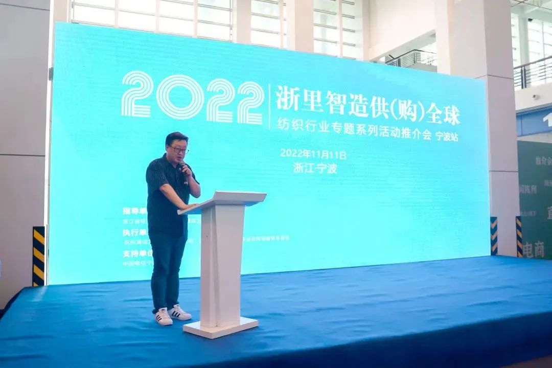 11月11日下午,“浙里智造供(購)全球”專場對接會如期召開。浙江省經(jīng)濟和信息化廳消費品工業(yè)處處長徐吉成、寧波市經(jīng)信局消費品工業(yè)處副處長徐財靈出席會議,浙江省企業(yè)技術創(chuàng)新協(xié)會跨境服務專委會秘書長戴冰擔任主持,中國電信寧波分公司副總經(jīng)理韓雄也參加了此次活動。本場大會集聚服裝供應鏈環(huán)節(jié)從數(shù)字化設計、智能化生產(chǎn)、智慧物流、供應鏈金融到海外倉等一系列鏈路中的優(yōu)質(zhì)服務商,分享自身先進經(jīng)驗和做法。