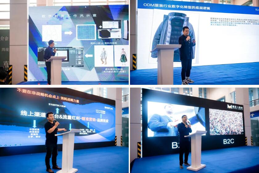 隨后,到場的企業(yè)負責人分享了自身的發(fā)展經(jīng)驗:天翼云科技有限公司經(jīng)理趙新完整地展示了中國電信天翼云4.0的整體架構和內(nèi)部結(jié)構;飛榴信息科技有限公司SaaS商業(yè)運營總監(jiān)丁騰飛分享了《以“智”提“效”,AI賦能服裝工廠數(shù)字化升級,柔性供應鏈建設理念和案例分析》;浙江凌迪數(shù)字科技有限公司華東銷售總監(jiān)董松以元宇宙背景下服裝時尚行業(yè)的新機遇為題,分享了凌迪的核心技術Style3D時尚創(chuàng)作引擎與經(jīng)典案例;杭州錦惠貿(mào)易有限公司執(zhí)行董事兼總經(jīng)理周斌圍繞生產(chǎn)貿(mào)易型公司如何運用展開討論3D數(shù)字化設計提升效益展開討論;商線科技(深圳)有限公司中國華東負責人郭永豪帶來了《獨立站如何助力服裝的出?!分黝}演講;杭州千點白網(wǎng)絡科技有限公司執(zhí)行董事兼總經(jīng)理阮雪青則介紹了跨境電商一把手工程的實施思路。
