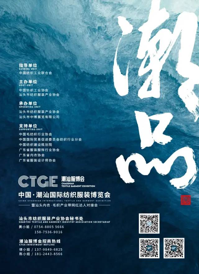 中國·潮汕國際紡織服裝博會得到了汕頭市委、市政府的大力支持,由中國針織工業(yè)協(xié)會、汕頭市紡織服裝產(chǎn)業(yè)協(xié)會共同主辦,全國各協(xié)會支持協(xié)辦,以汕頭及國內(nèi)內(nèi)衣家居服、毛衫產(chǎn)業(yè)為依托,以展示針織紡織服裝企業(yè)品牌、供應(yīng)鏈、新制造、新產(chǎn)品、新材料、新趨勢為主的展示、交易和宣傳平臺,致力打造集品牌推廣、文化傳播、展示交流、高端論壇、趨勢發(fā)布于一體的國際化紡織服裝產(chǎn)業(yè)平臺。