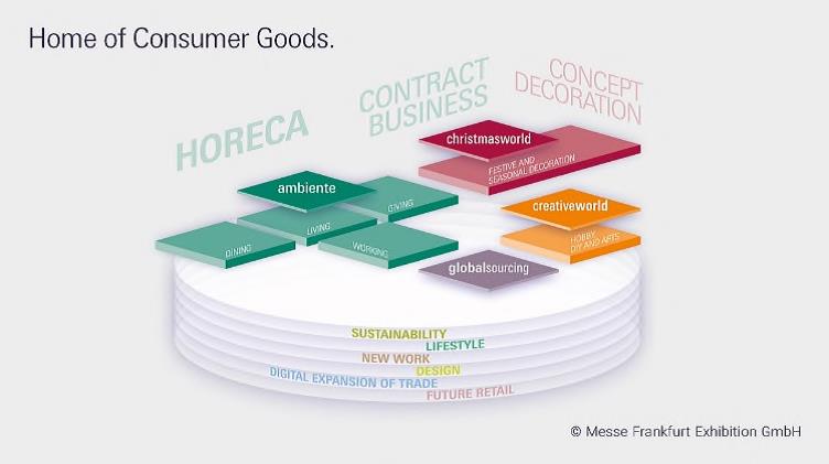 “此新布局讓法蘭克福成為全球消費品行業(yè)的一站式采購平臺。在這里,大家的生活方式得到了詮釋和塑造。我們旨在讓行業(yè)在挑戰(zhàn)時期能夠行穩(wěn)致遠。從2023年2月開始,業(yè)內人士可以在我們的線下平臺上進行業(yè)務、互動交流,定調未來流行趨勢,也可以在接下來的12至18個月通過線上工具繼續(xù)為全球消費者提供購買和體驗機會?!毕M品展會副總裁Philipp Ferger先生解釋道。屆時豐富全面的產(chǎn)品組合將和其他延伸補充產(chǎn)品在全新布局的展廳呈現(xiàn)。在“消費品展”的主題下,三場領軍貿易展會是所有零售業(yè)務以及HoReCa、合同業(yè)務、室內設計、概念性裝飾把握未來發(fā)展的交叉點,再次加強了法蘭克福作為國際貿易樞紐重要性。