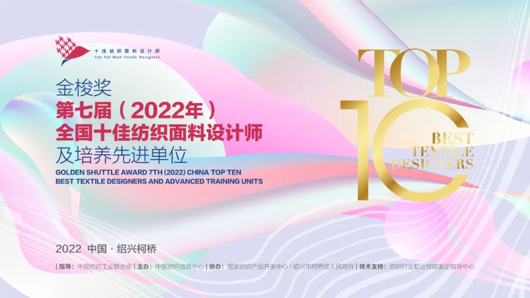為貫徹落實人才強國戰(zhàn)略,全力打造紡織行業(yè)人力資源競爭力,提升我國紡織面料產業(yè)的創(chuàng)新設計水平,推動中國紡織面料設計師人才隊伍的成長和壯大,助力紡織強國建設,中國紡織信息中心在中國紡織工業(yè)聯(lián)合會的指導下,在國家紡織產品開發(fā)中心、紹興市柯橋區(qū)人民政府協(xié)助和支持下,開展了“第七屆(2022年)“金梭獎”全國十佳紡織面料設計師及培養(yǎng)先進單位”評選活動。