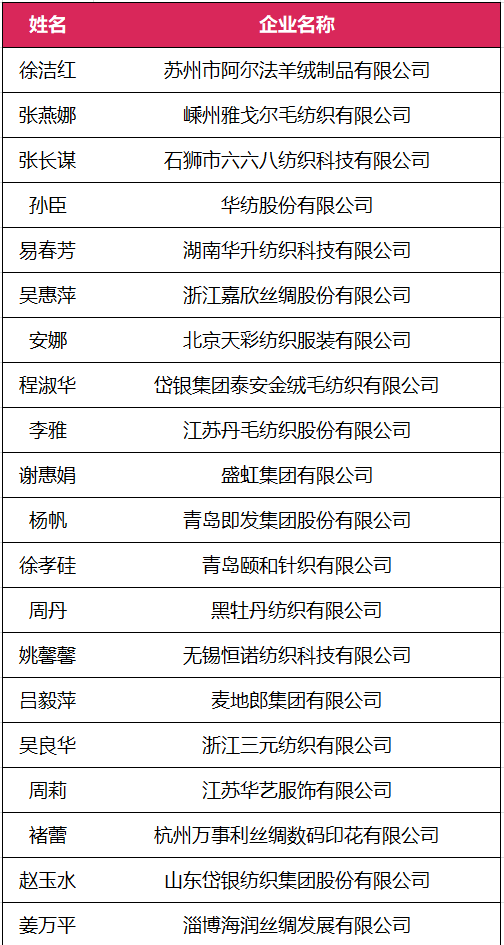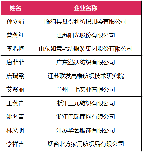 經全國十佳紡織面料設計師及培養(yǎng)先進單位評委會對申報人和申報企業(yè)(單位)的資格審查、評審和公示,現決定授予山東如意科技集團有限公司張偉紅第七屆(2022年)“金梭獎”全國紡織面料設計師“金柯橋”獎榮譽稱號;授予魯豐織染有限公司葛慶龍等10名設計師第七屆(2022年)“金梭獎”全國十佳紡織面料設計師榮譽稱號;授予江蘇陽光股份有限公司曹燕紅等10名設計師第七屆(2022年)“金梭獎”全國優(yōu)秀紡織面料設計師榮譽稱號;授予華紡股份有限公司孫臣等20名設計師第七屆(2022年)“金梭獎”全國入圍紡織面料設計師榮譽稱號;授予山東南山智尚科技股份有限公司等10家單位第七屆(2022年)“金梭獎”全國紡織面料設計師培養(yǎng)先進單位榮譽稱號;授予紹興市柯橋區(qū)中國輕紡城建設管理委員會第七屆(2022年)“金梭獎”全國十佳紡織面料設計師及培養(yǎng)先進單位推動貢獻獎榮譽稱號。