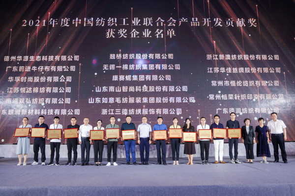 7月28日,2021年度中國(guó)紡織工業(yè)聯(lián)合會(huì)產(chǎn)品開發(fā)貢獻(xiàn)獎(jiǎng)?lì)C獎(jiǎng)典禮在江蘇盛澤盛大召開,德州華源生態(tài)科技有限公司榮獲2021年度“中國(guó)紡織工業(yè)聯(lián)合會(huì)產(chǎn)品開發(fā)貢獻(xiàn)獎(jiǎng)”。