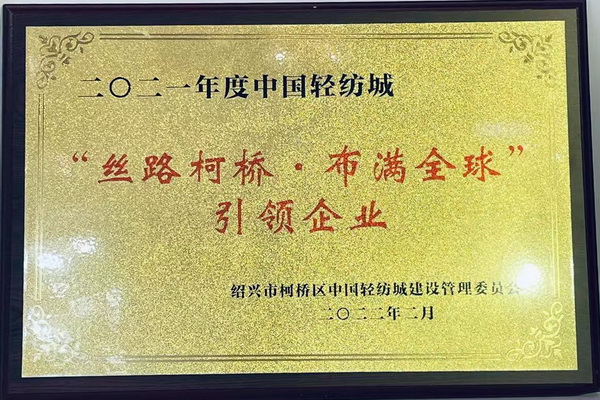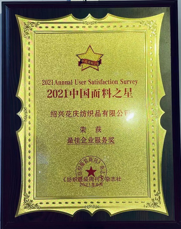 花慶紡織“2021年中國面料之星最佳服務(wù)企業(yè)獎(jiǎng)”、二O二一年度中國輕紡城 “絲路柯橋·布滿全球”引領(lǐng)企業(yè)······名副其實(shí)!