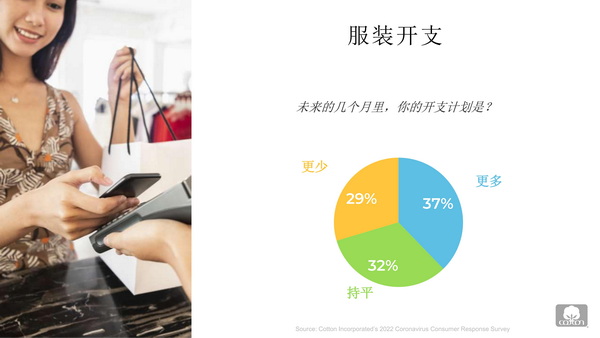 “超過(guò)三分之一的消費(fèi)者表示計(jì)劃在未來(lái)幾個(gè)月內(nèi)增加在服裝上的支出。但是,如果疫情繼續(xù)導(dǎo)致停工或通貨膨脹導(dǎo)致基本物品的價(jià)格上漲,這意味著消費(fèi)者不得不減少花在衣服上的錢(qián),那么服裝消費(fèi)可能會(huì)出現(xiàn)一些放緩。”張立綱指出。