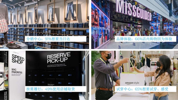 “調(diào)查顯示,三分之二的中國(guó)消費(fèi)者表示他們現(xiàn)在更常待在家里。超過(guò)80%的人認(rèn)為,他們還需要一段時(shí)間才能在商場(chǎng)感到安全,這促使中國(guó)消費(fèi)者更多地在網(wǎng)上購(gòu)物。從2020年到2021年,網(wǎng)購(gòu)零售額大幅增長(zhǎng)。2022年,預(yù)計(jì)近40%的中國(guó)零售額將來(lái)自電子商務(wù),達(dá)到近26萬(wàn)億元?!睆埩⒕V強(qiáng)調(diào)道,在線購(gòu)物偏好的激增導(dǎo)致許多品牌和零售商重新構(gòu)想如何利用實(shí)體店空間。大多數(shù)消費(fèi)者表示他們?cè)诘陜?nèi)購(gòu)物是為了獲得體驗(yàn),因此品牌和零售商應(yīng)該重新設(shè)計(jì)實(shí)體店,為消費(fèi)者創(chuàng)造沉浸式體驗(yàn),進(jìn)而提升品牌在消費(fèi)者心中的形象。