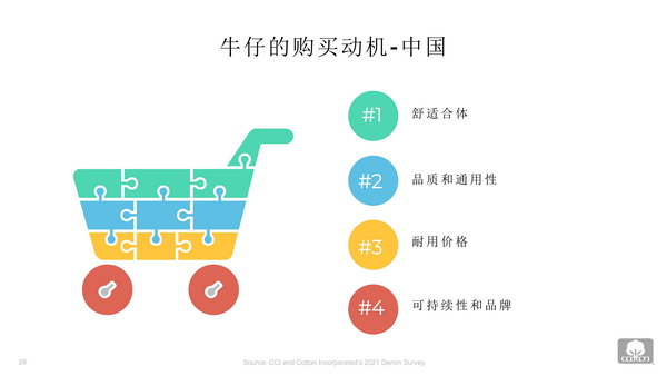 “舒適度和合身度是中國(guó)消費(fèi)者購(gòu)買(mǎi)牛仔褲最大的動(dòng)機(jī),其次是質(zhì)量與多功能性?!睆埩⒕V表示,超過(guò)三分之二的中國(guó)消費(fèi)者在購(gòu)買(mǎi)牛仔褲時(shí)認(rèn)為合身非常重要。當(dāng)找到適合的款式時(shí),超過(guò)五分之四的人愿意為牛仔褲支付更多費(fèi)用。