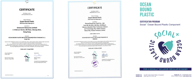 OBP(Ocean Bound Plastic趨海塑料)是NGO零塑海洋(Zero Plastic Oceans)開發(fā)的國際認證標準,通過OBP認證的標準即表明,通過政府公共服務以外的其他人力物力投入,避免了一定量的塑料垃圾流入海洋,或是從海洋中減少了一定量的塑料垃圾。