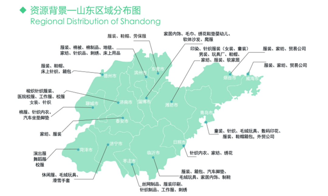紡織服裝產(chǎn)業(yè)向來是山東省傳統(tǒng)優(yōu)勢產(chǎn)業(yè)、重要支柱產(chǎn)業(yè)和民生產(chǎn)業(yè)。青島針織、童裝遠近聞名。在青島市20大出口商品中,紡織和服裝占據(jù)兩個席位,分列第三位和第七位。