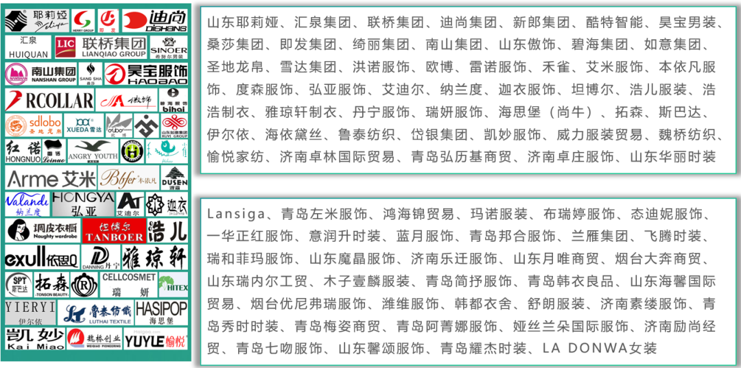 上海裕承商貿(mào)、寧波博洋服飾集團、上海棉花堂商貿(mào)、寧波瑞凌達、嘉興思凱服飾、弘法公機國際貿(mào)易、杭州嘉遠、青島孚士綸紡、青島紡聯(lián)集團、青島天繪、依美時尚、杭州楚帛時裝、青島格萊默服裝、青島格萊默服裝、青島瑞蓬服裝、青島素襟、青島天蝎座、青島愛蒂恩、青島衣恩諾、青島海利緯服裝、青島金盛國宇、聯(lián)橋集團、青島龍仕達、青島垚鑫允進出口、青島藝豐泰、山東新華錦、山東耶莉婭、青島樂好服飾、施韋詩國際貿(mào)易、浙江隴越貿(mào)易、雪達集團、青島浩爾服飾、青島榮和祥外貿(mào)、嘉興開心索點子商務、上海申達進、廣州利好服裝、深圳市拓嘉、廣州索駿貿(mào)易、廣州汐汶優(yōu)木、森女部落、質(zhì)加服飾、深圳詩伊美服飾......