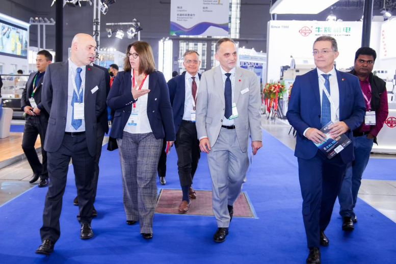 意大利駐上海總領(lǐng)事安緹雅(Tiziana D’Angelo)一行前往展覽場(chǎng)地,與意大利國(guó)家展團(tuán)以及其他意大利參展企業(yè)進(jìn)行了深入交流。她鼓勵(lì)參展意大利企業(yè)進(jìn)一步拓展行業(yè)技術(shù)交流,加強(qiáng)創(chuàng)意創(chuàng)新合作,讓更多亞洲及中國(guó)客戶了解到意大利領(lǐng)先的紡織工業(yè)技術(shù)與解決方案。