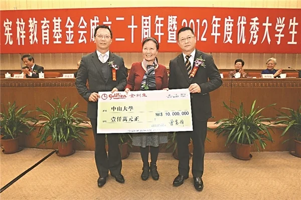 曾憲梓教育基金會(huì)捐贈(zèng)中山大學(xué)港幣1000萬元,右為金利來集團(tuán)主席曾智明