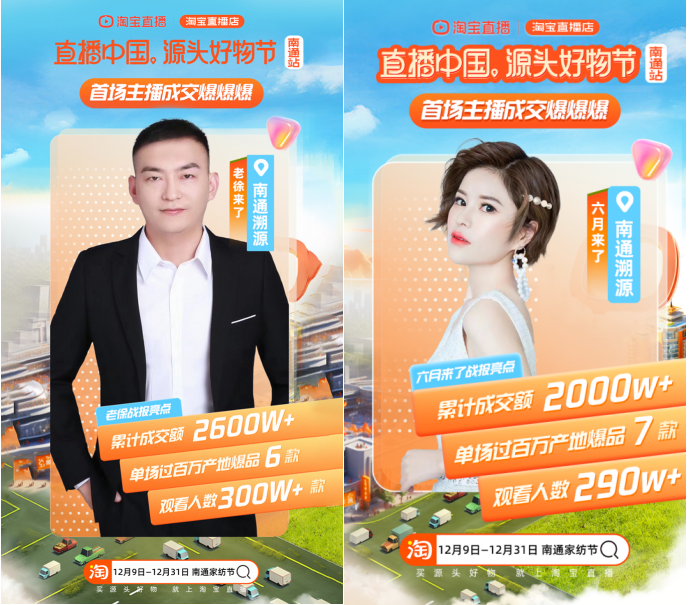 今年以來,淘寶直播一直致力于淘寶產(chǎn)業(yè)帶直播平臺(tái)的搭建和完善,賦能產(chǎn)業(yè)帶相關(guān)區(qū)域經(jīng)濟(jì)發(fā)展。南通是家紡產(chǎn)業(yè)聚集地,已建成全國規(guī)模最大、市場占有率最高的家用紡織品生產(chǎn)基地和貿(mào)易市場。隨著直播帶貨的興起,南通家紡的營銷模式不斷創(chuàng)新,直播成交取得亮眼成績。