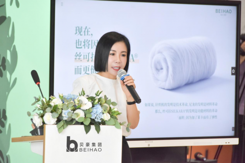 “貝豪集團(tuán)展現(xiàn)了勇于跨界和突破的膽識(shí),成功地將美妝與紡織兩大行業(yè)融合在一起。通過其自主研發(fā)的絲可拉纖維,該集團(tuán)為消費(fèi)者帶來了前所未有的健康美學(xué)體驗(yàn)和高品質(zhì)的生活享受。這一創(chuàng)新的跨界行動(dòng),不僅開啟了貝豪從美妝到紡織的新篇章,也標(biāo)志著其壯麗航程的啟航。這不僅是企業(yè)多元化發(fā)展戰(zhàn)略的一個(gè)重要里程碑,更是對(duì)傳統(tǒng)紡織行業(yè)創(chuàng)新邊界的一次勇敢探索與實(shí)踐。”中國紡織信息中心副總工程師楊萍在儀式上如此說道。