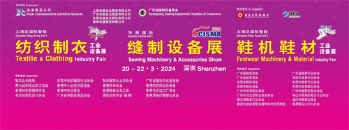 2024年3月20日,由訊通展覽公司、廣東省縫制設(shè)備商會主辦、廣東省鞋機協(xié)會協(xié)辦的大灣區(qū)國際智能紡織制衣工業(yè)設(shè)備展(DTC)、華南國際縫制設(shè)備展(SCISMA)、大灣區(qū)國際智能鞋機鞋材工業(yè)設(shè)備展(DFM)展(以下簡稱2024 DTC&SCISMA&DFM)在深圳國際會展中心17號館隆重舉行!