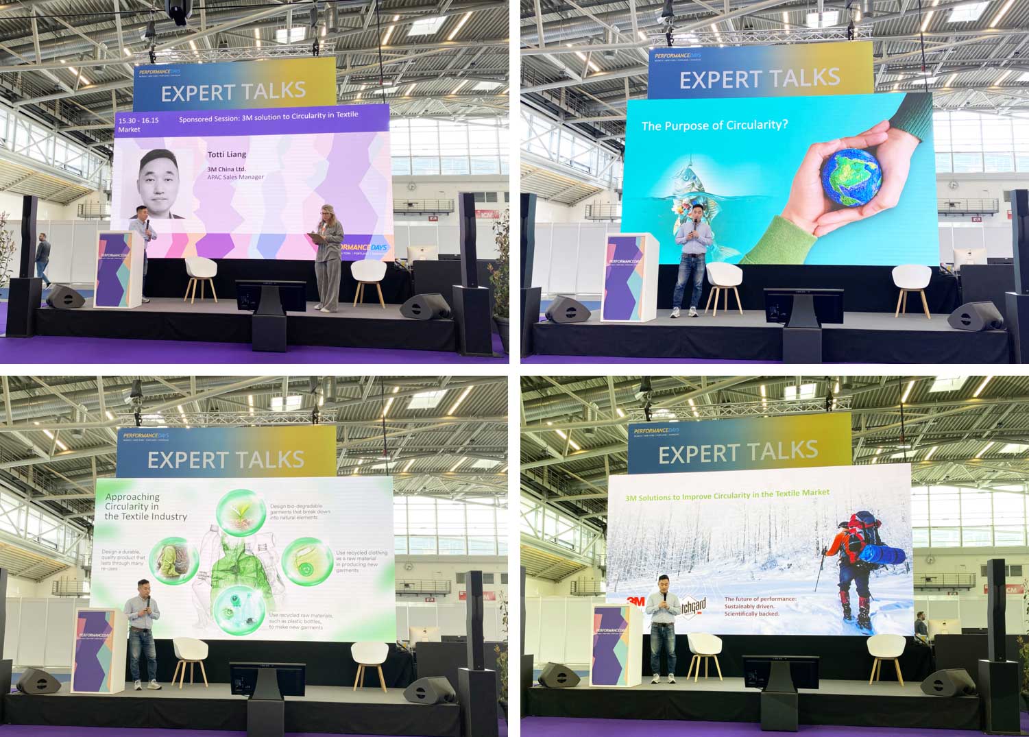 期間,3M消費品事業(yè)部服飾及紡織材料部 亞太區(qū)業(yè)務(wù)副總經(jīng)理 Totti Liang受邀出席,聚焦輕量化、新材料、可持續(xù)等維度,分享了一場以 “3M Solution to Circularity in Textile Market”的主題演講。