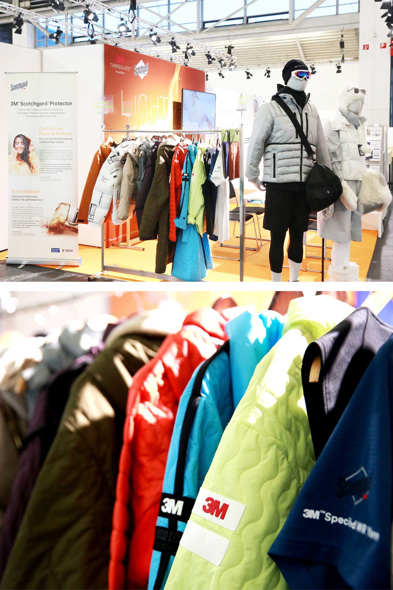 靜態(tài)展陳中,展示著來自3M™新雪麗™保暖材料與3M™思高潔™防護助劑的創(chuàng)新產(chǎn)品和解決方案,重新定義可持續(xù)時尚的科技環(huán)保新場景,讓觀眾近距離感知3M時尚科技的溫暖力量的同時,為業(yè)內(nèi)上下游的共同合作帶來更多啟發(fā)與可能。