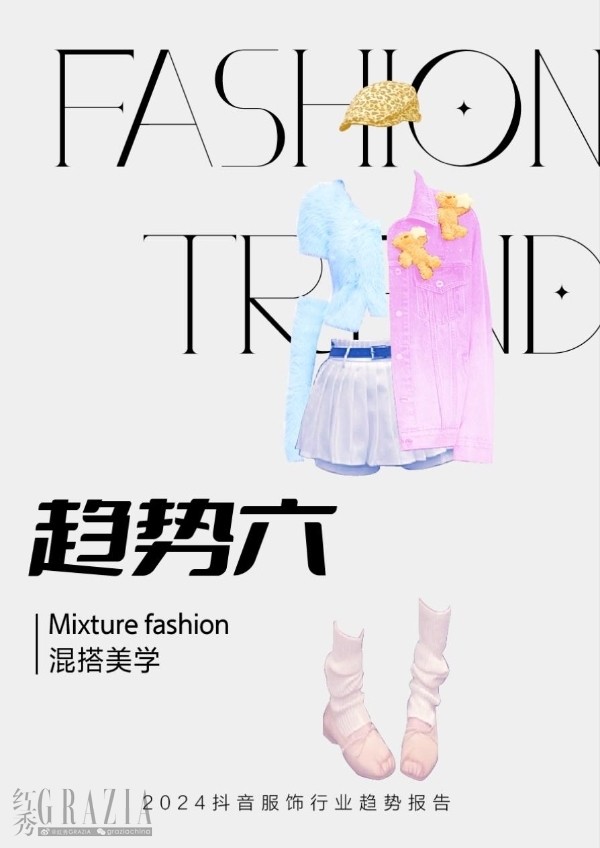 混搭美學(xué):“熱辣滾燙”的甜辣風(fēng)、Y2K風(fēng)與混搭風(fēng)重獲新生。裹身上衣、芭蕾裙、網(wǎng)球裙、紗裙等單品成為女性新寵。以balletcore、barbiecore、thritcore為代表的“core”學(xué)混搭近一年的社媒熱度不斷提升,拼色、撞色成為時(shí)下熱議話題。