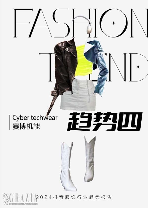 賽博機(jī)能:“緊身塑身衣+工裝褲+時(shí)尚配飾”的穿搭公式,成為前衛(wèi)潮人的經(jīng)典組合。太空感、末日風(fēng)、廢土風(fēng)這類融合了超現(xiàn)實(shí)主義和后現(xiàn)代主義的穿搭風(fēng)格,展現(xiàn)出潮流先鋒對(duì)未來(lái)數(shù)字世界的向往與探索。