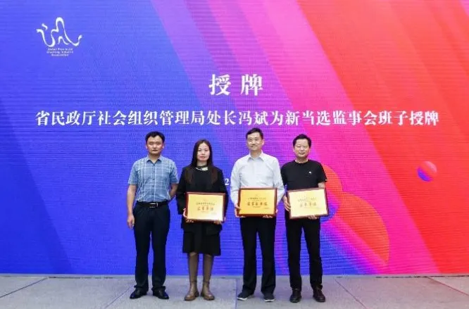 安徽省民政廳社會組織管理局副處長馮斌為監(jiān)事會班子授牌