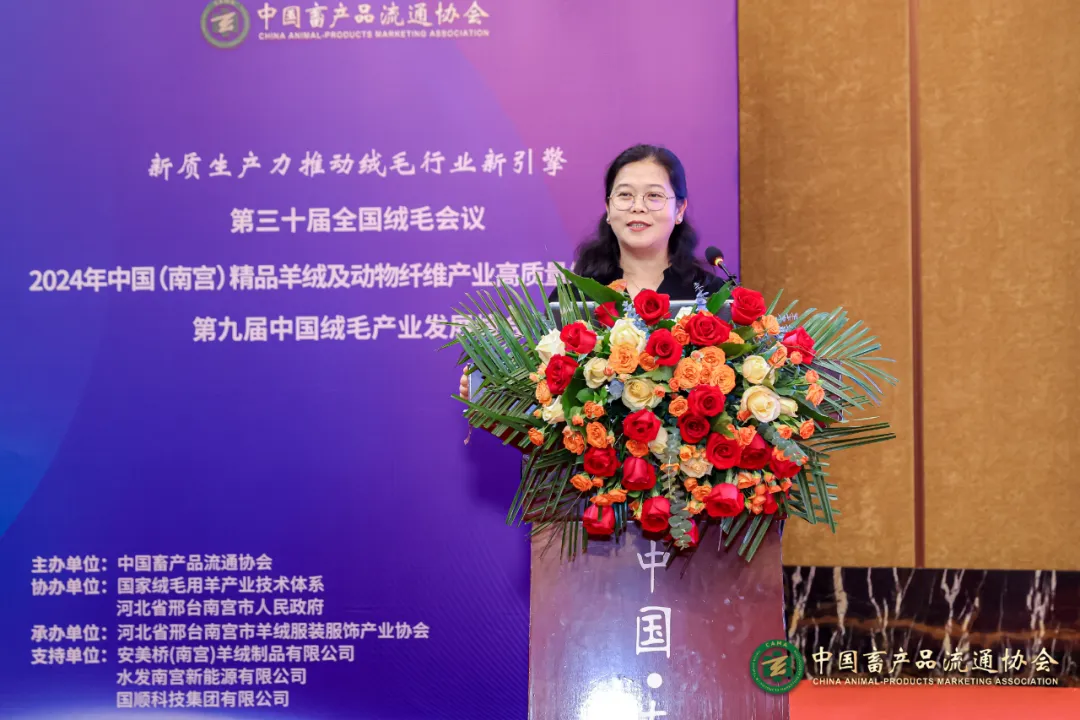 中國(guó)畜產(chǎn)品流通協(xié)會(huì)副會(huì)長(zhǎng)兼秘書(shū)長(zhǎng)沈靜通報(bào)了2023年度絨毛行業(yè)競(jìng)爭(zhēng)力評(píng)薦結(jié)果。
