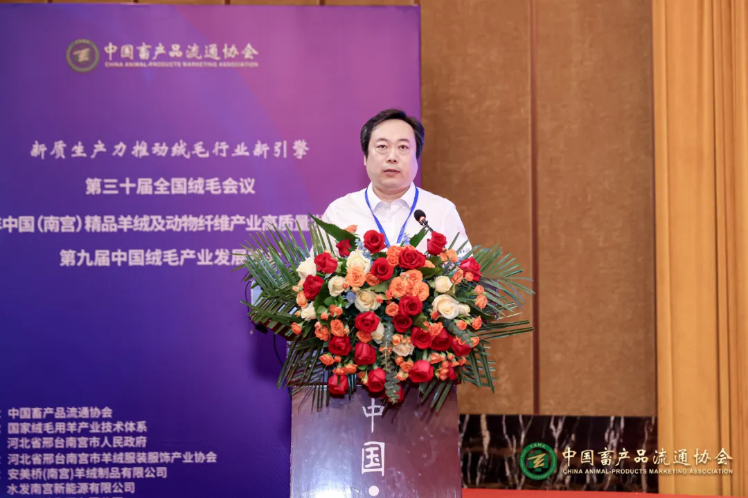 中國(guó)畜產(chǎn)品流通協(xié)會(huì)常務(wù)副會(huì)長(zhǎng)、中國(guó)供銷(xiāo)農(nóng)產(chǎn)品集團(tuán)有限公司監(jiān)事會(huì)主席劉鶴東宣布了南宮市絨毛產(chǎn)業(yè)發(fā)展評(píng)估的決定。