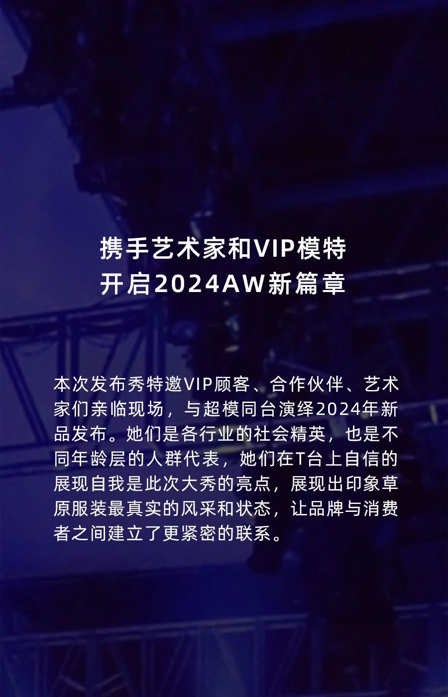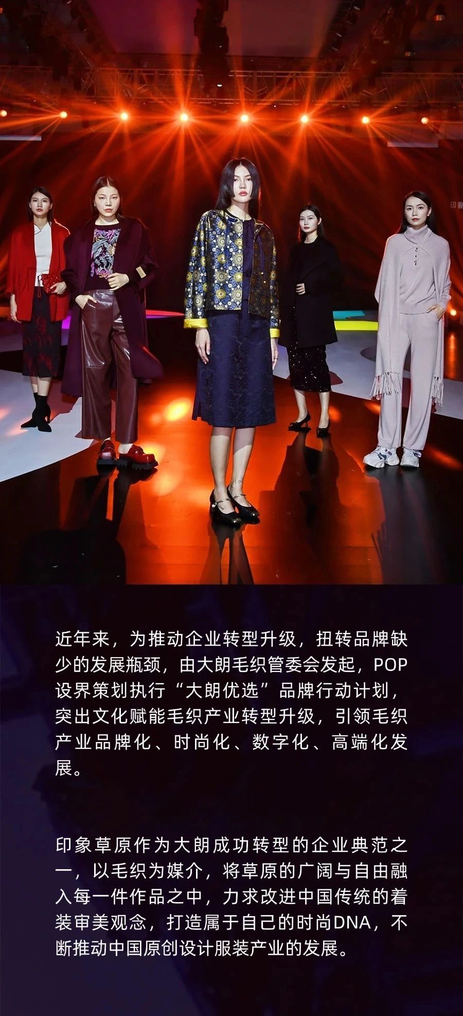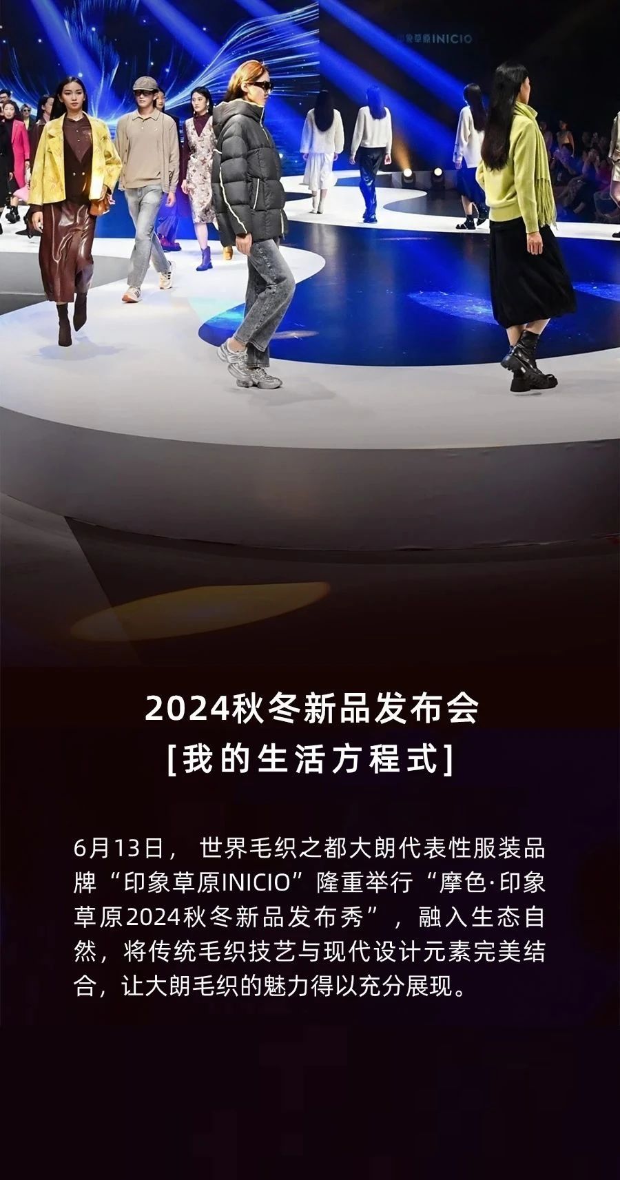 6月13日晚上, 世界毛織之都大朗代表性服裝品牌“印象草原INICIO”在大朗毛織貿易中心三樓毛織創(chuàng)新平臺隆重舉行“2024秋冬時尚發(fā)布秀”?;顒?span style="margin: 0px; padding: 0px; outline: 0px; max-width: 100%; color: #05073b; font-family: -apple-system, BlinkMacSystemFont, 'Segoe UI', Roboto, Ubuntu, 'Helvetica Neue', Helvetica, Arial, 'PingFang SC', 'Hiragino Sans GB', 'Microsoft YaHei UI', 'Microsoft YaHei', 'Source Han Sans CN', sans-serif, 'Apple Color Emoji', 'Segoe UI Emoji'; letter-spacing: normal; background-color: #fdfdfe; box-sizing: border-box !important; overflow-wrap: break-word !important;">不僅展示了“印象草原INICIO”的時尚秋冬系列,更向世界宣告了大朗毛織產業(yè)的創(chuàng)新能力和時尚影響力。這場秋冬時尚發(fā)布秀,體現(xiàn)大朗毛織產業(yè)發(fā)展的活力和動力,也讓人更加期待“印象草原INICIO”未來的精彩表現(xiàn)。