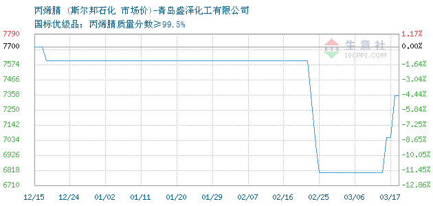 12月17日斯爾邦石化丙烯腈為7600元