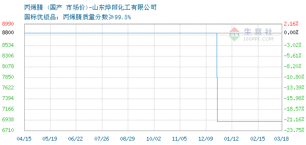 12月17日國(guó)產(chǎn)關(guān)于丙烯腈的報(bào)價(jià)為8800元/噸。丙烯腈的規(guī)格:國(guó)標(biāo)優(yōu)級(jí)品;丙烯腈質(zhì)量分?jǐn)?shù)≥99.5%。該報(bào)價(jià)有效期為3天。報(bào)價(jià)提供方:山東燁陽(yáng)化工有限公司。