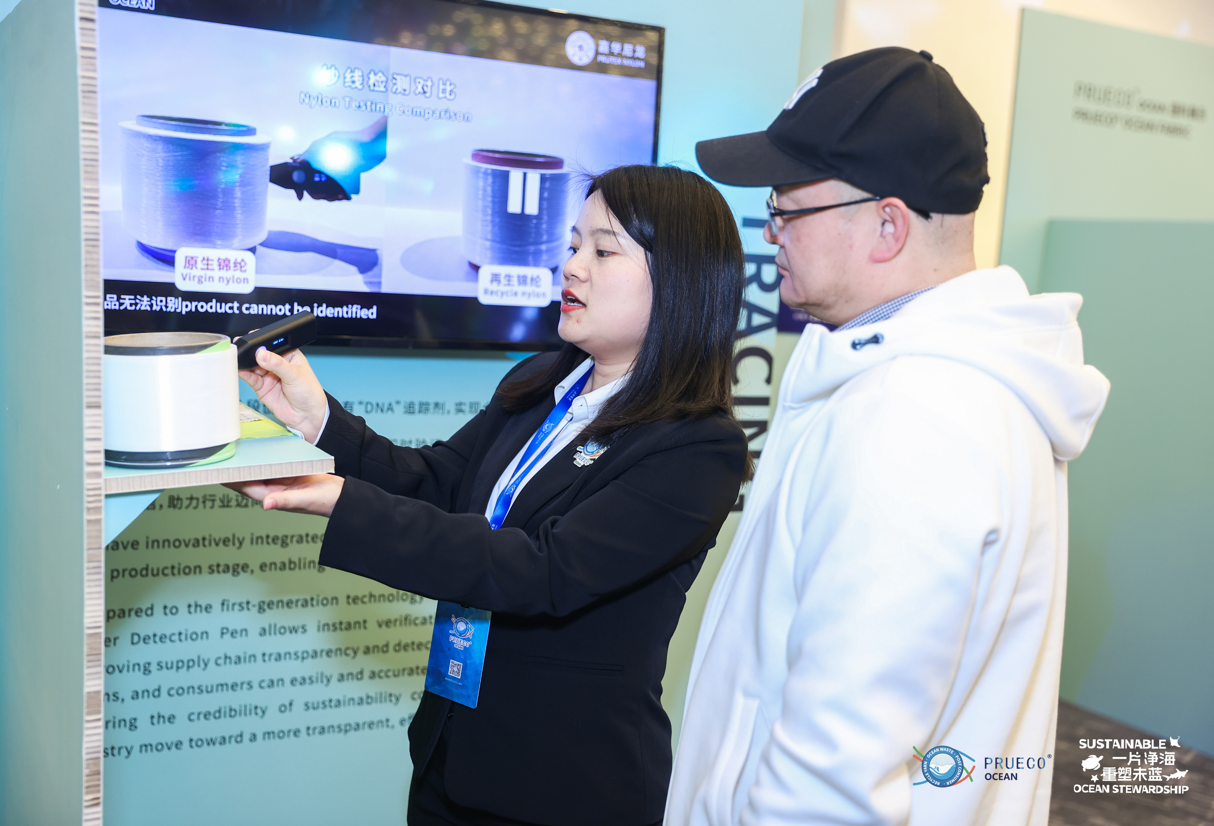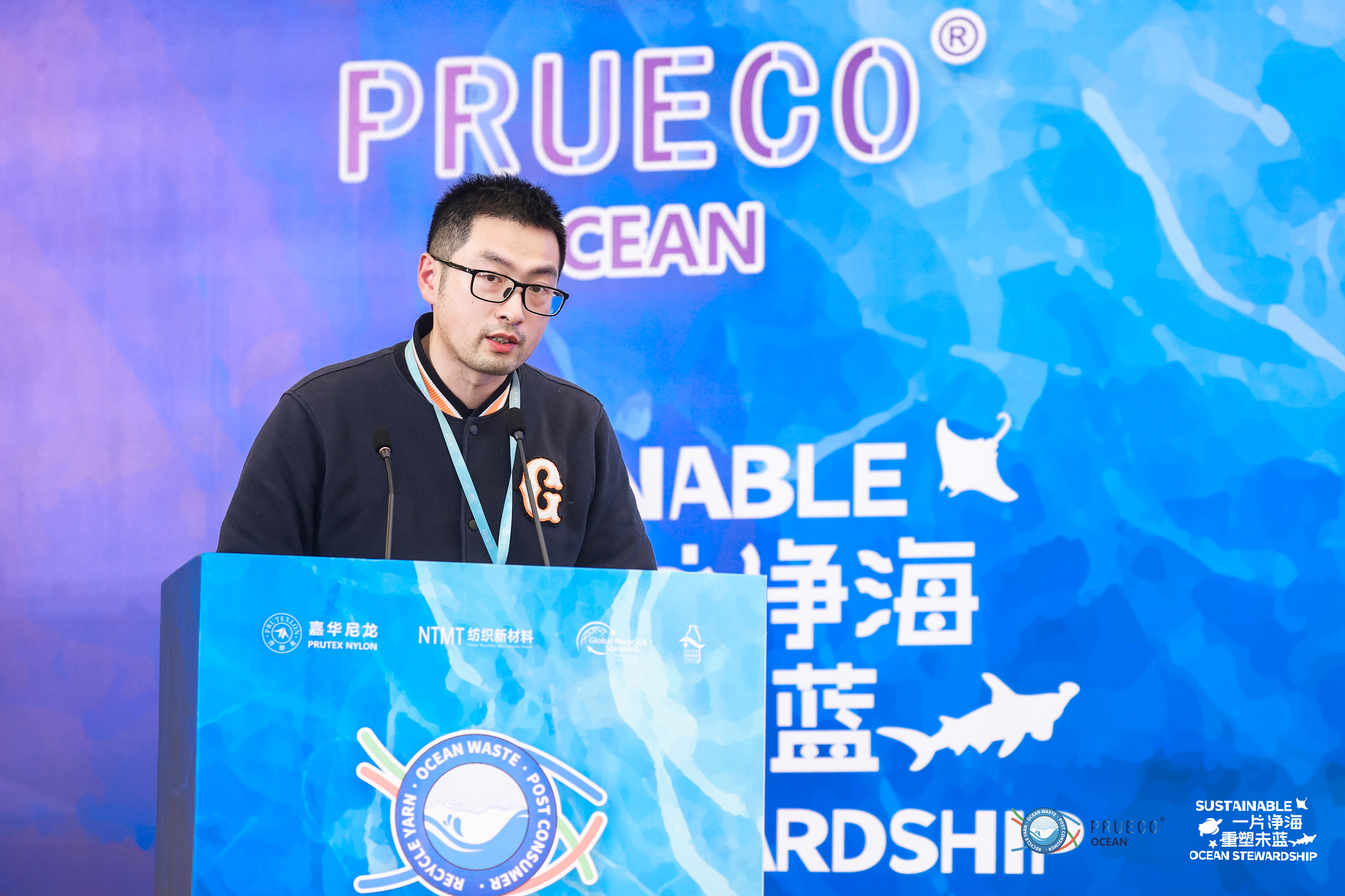 “PRUECO® 的品牌使命是降低原生石化資源使用,減少對地球生態(tài)的破壞。而海洋里有著數(shù)百萬噸的塑料垃圾,且預計到2050年塑料垃圾將超過魚類,這其中近10%來自幽靈漁具。”浙江嘉華特種尼龍有限公司運營事業(yè)部常務(wù)副總經(jīng)理沈俊超以數(shù)據(jù)闡述了嘉華尼龍聚焦海洋幽靈漁具回收的關(guān)鍵原因,隨后,也就嘉華作為“全球唯一一家布局海洋回收網(wǎng)點的企業(yè)”的優(yōu)勢,以及PRUECO® OCEAN全球首創(chuàng)化學法海洋再生技術(shù)的各項優(yōu)勢與產(chǎn)品開發(fā)思路進行了詳細介紹。“此外,PRUECO® OCEAN從再生切片生產(chǎn)開始加入的嘉華獨有“DNA”追蹤劑,確保了每一件產(chǎn)品全鏈路都可追溯,這讓PRUECO®吊牌可以成為您環(huán)保產(chǎn)品的專屬環(huán)保標識,幫助您更好的講述環(huán)??沙掷m(xù)故事。”