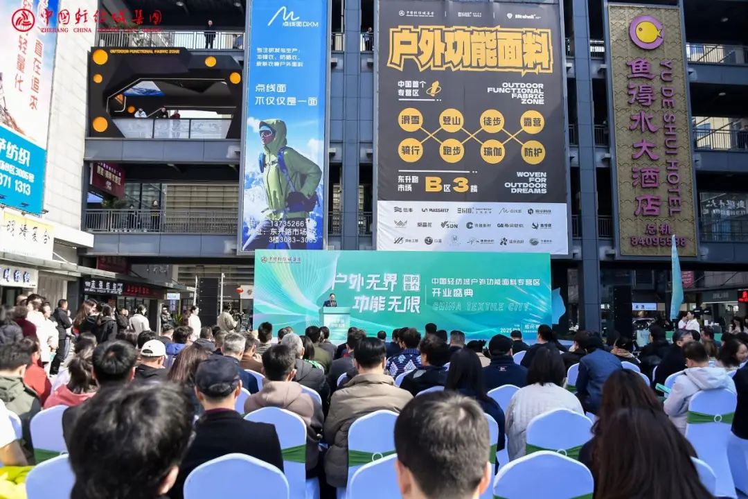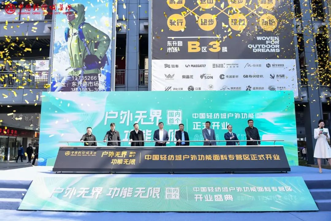 隨著金沙傾瀉的璀璨時(shí)刻,3月18日,中國(guó)輕紡城東升路市場(chǎng)迎來(lái)里程碑式新起點(diǎn)——中國(guó)輕紡城戶外功能面料專營(yíng)區(qū)正式開業(yè),以“戶外無(wú)界,功能無(wú)限”為主題,標(biāo)志著戶外功能面料產(chǎn)業(yè)邁向新征程。這是中國(guó)輕紡城市場(chǎng)轉(zhuǎn)型升級(jí)的又一次探索,也是東升路市場(chǎng)生態(tài)深度布局的又一次突破。現(xiàn)場(chǎng),紡織行業(yè)專家領(lǐng)導(dǎo)、品牌服裝企業(yè)代表、功能面料標(biāo)桿企業(yè)代表及紡織領(lǐng)域網(wǎng)紅達(dá)人齊聚一堂,共同見證開業(yè)這一重要時(shí)刻,共商戶外功能面料未來(lái)發(fā)展新路徑。