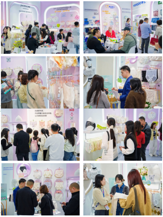 完美情侶®帶來(lái)的本草五味內(nèi)褲,以現(xiàn)代設(shè)計(jì)時(shí)尚語(yǔ)言,將益母草、山茶花、生姜、黃芪、蒲公英五味草藥融入內(nèi)褲,賦予產(chǎn)品舒適性、抗菌性、安全環(huán)保性,帶給人以全方位的滋養(yǎng)呵護(hù);紅姿雅聚焦無(wú)痕貼身、科技塑形,打造塑造完美女人的舒適塑形內(nèi)褲;主打原創(chuàng)、現(xiàn)貨優(yōu)勢(shì)的內(nèi)褲生產(chǎn)廠家富多康,12年深耕,只為研發(fā)適合中國(guó)女性的舒適內(nèi)褲,現(xiàn)場(chǎng)帶來(lái)的輕塑類(lèi)型內(nèi)褲,以舒適、無(wú)勒感為賣(mài)點(diǎn),面料升級(jí)為10A級(jí)面料,只為帶給用戶(hù)更極致穿著體驗(yàn);嘉爵服飾帶來(lái)的泰迪博士?jī)和瘍?nèi)褲,與宙途專(zhuān)利防摩擦運(yùn)動(dòng)系列內(nèi)褲引發(fā)現(xiàn)場(chǎng)觀眾熱烈詢(xún)問(wèn);雄興內(nèi)衣將全新品牌YONGOO學(xué)士®帶到現(xiàn)場(chǎng),符合當(dāng)下年輕女性審美的時(shí)尚靚麗內(nèi)褲,掀起男士?jī)?nèi)褲年輕時(shí)尚新革命;賢睿智創(chuàng)則重點(diǎn)推介了產(chǎn)品運(yùn)用的7A級(jí)抗菌科技,非化學(xué)抑菌劑帶來(lái)的抑菌效果,更安全無(wú)刺激;庚源針織則向我們展示了旗下傾力打造性感女神的“依可莉柔®”品牌的情趣與性感;文熙制衣廠極具東方氣韻的水墨紋樣與提花,帶你品味東方內(nèi)秀之美;百利安(百?gòu)?qiáng)盛)爆品供應(yīng)鏈則通過(guò)選用奧地利蘭精天絲打造的天然環(huán)保舒適內(nèi)褲、裸感千金棉內(nèi)褲、聚乳酸原料打造的“小涼風(fēng)”內(nèi)褲以及加入海藻生物的蠶絲養(yǎng)護(hù)褲等豐富產(chǎn)品的展示,揭開(kāi)了“爆品”打造秘訣;還有微諾服飾以無(wú)感新科技打造的零重力自由無(wú)束縛內(nèi)褲;主打時(shí)尚輕奢蕾絲內(nèi)褲的貴香蘭服飾,帶來(lái)的輕塑小貓妖內(nèi)褲;品牌連鎖內(nèi)褲制造商鴻浩服飾旗下“可諾兔”舒膚棉兒童內(nèi)褲;寶美實(shí)業(yè)旗下“嘉莉夢(mèng)”品牌擁有專(zhuān)利托瑪琳和有機(jī)鈦的輕塑型女士收腹褲,與主打極致性?xún)r(jià)比極致高品質(zhì)的“莫小柔”內(nèi)褲,以及港俏實(shí)業(yè)的港式貼身內(nèi)褲……從舒適型內(nèi)褲、功能性?xún)?nèi)褲到性感蕾絲內(nèi)褲的豐富產(chǎn)品組合,給客戶(hù)們帶來(lái)了更多觀賞性和選擇性。