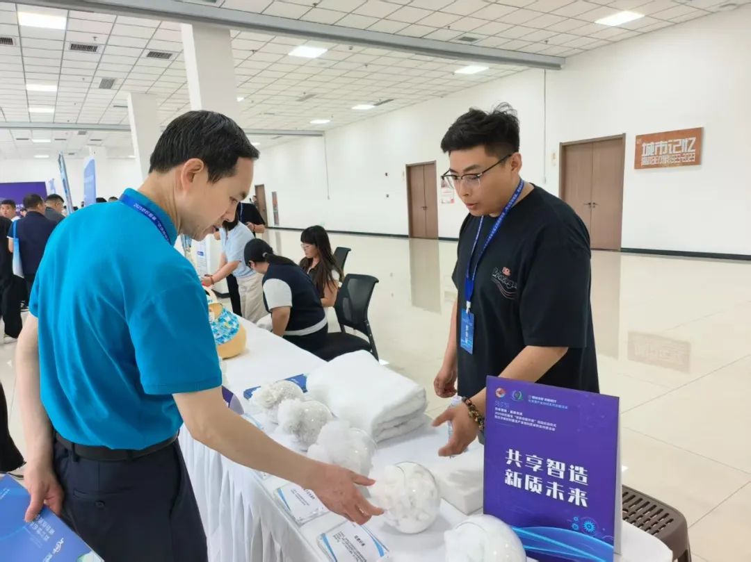 省工信廳黨組成員、副廳長(zhǎng)馬越,省工信廳輕工處處長(zhǎng)谷米,在石家莊市紡織行業(yè)協(xié)會(huì)會(huì)長(zhǎng)邵光毅陪同下,蒞臨石家莊市現(xiàn)場(chǎng)推介展位指導(dǎo)。