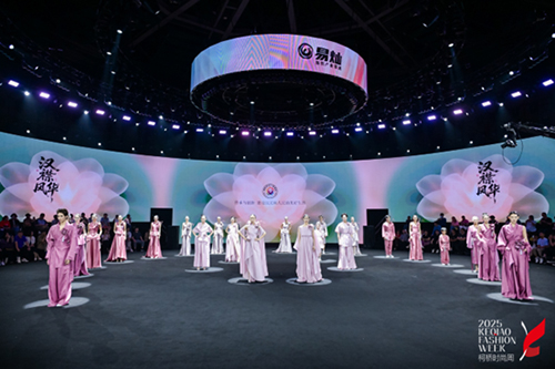 堅(jiān)守文化根脈,對(duì)話時(shí)代脈搏,引領(lǐng)國(guó)際風(fēng)潮,這是此次大秀傳遞的研發(fā)哲學(xué)。易燦紡織以創(chuàng)新性面料研發(fā)為筆,叢劍以非遺技藝為墨,共同在傳統(tǒng)服飾的“形”與“神”之間找到當(dāng)代注腳。這場(chǎng)大秀不僅是一次美學(xué)展示,更是對(duì)漢襟文化商業(yè)化路徑的探索。憑借科技化表達(dá)突破國(guó)際時(shí)尚之壁壘,讓悠悠千年的漢風(fēng),在經(jīng)緯的縱橫交織中,織就屬于這個(gè)時(shí)代的文化華裳。
