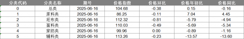 中國(guó)·柯橋紡織指數(shù)|20250616期價(jià)格指數(shù)