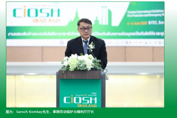 在開(kāi)幕式上,泰國(guó)勞動(dòng)保護(hù)與福利廳廳長(zhǎng)Saroch Komkay先生表示:“泰國(guó)勞工部非常歡迎泰國(guó)勞保會(huì)等與‘安全泰國(guó)’國(guó)家戰(zhàn)略高度契合的展會(huì)或活動(dòng)的舉辦。我們的目標(biāo)是降低全國(guó)的工傷事故率、提升安全標(biāo)準(zhǔn),為雇主、安全管理人員及勞動(dòng)者提供切實(shí)可行的裝備與知識(shí),構(gòu)建更安全、高效的工作環(huán)境,并進(jìn)一步提高人們的安全意識(shí)。”