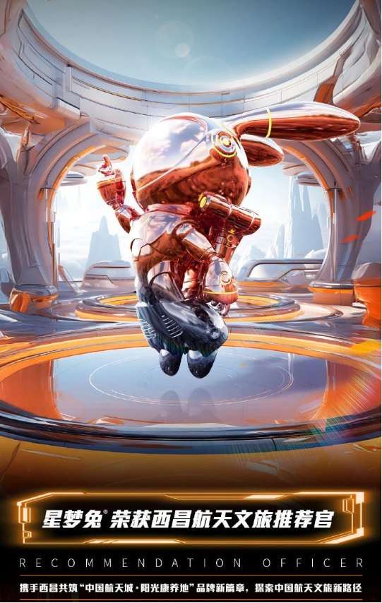 在消費(fèi)品領(lǐng)域,中糧長(zhǎng)城超然 super burning19 度X星夢(mèng)兔聯(lián)名新品發(fā)布,一起舉杯,為夢(mèng)想干杯。與“中國(guó)航天城”西昌強(qiáng)強(qiáng)聯(lián)合,開(kāi)啟航天+文旅的全新篇章,2025 年 5 月西昌市文化廣播電視和旅游局正式授予守護(hù)九天的角色“星夢(mèng)兔”成為了“西昌航天文旅推薦官”。