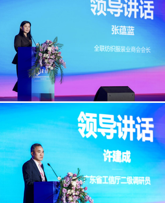 廣東省工信廳二級調(diào)研員許建成、廣東省工商聯(lián)黨組成員兼秘書長關(guān)向明、全聯(lián)紡織服裝業(yè)商會會長張?zhí)N藍及中國紡織工業(yè)聯(lián)合會副會長楊兆華相繼致辭。他們充分肯定協(xié)會三十年來對地方經(jīng)濟發(fā)展和產(chǎn)業(yè)升級的突出貢獻,認為協(xié)會在規(guī)范行業(yè)秩序、推動原創(chuàng)創(chuàng)新、開拓國際市場等方面發(fā)揮了不可替代的作用。同時,結(jié)合“十五五”發(fā)展大局,對協(xié)會及行業(yè)未來加快發(fā)展新質(zhì)生產(chǎn)力、推動產(chǎn)業(yè)智能化綠色化融合化、開拓國際國內(nèi)兩個市場提出殷切期望。