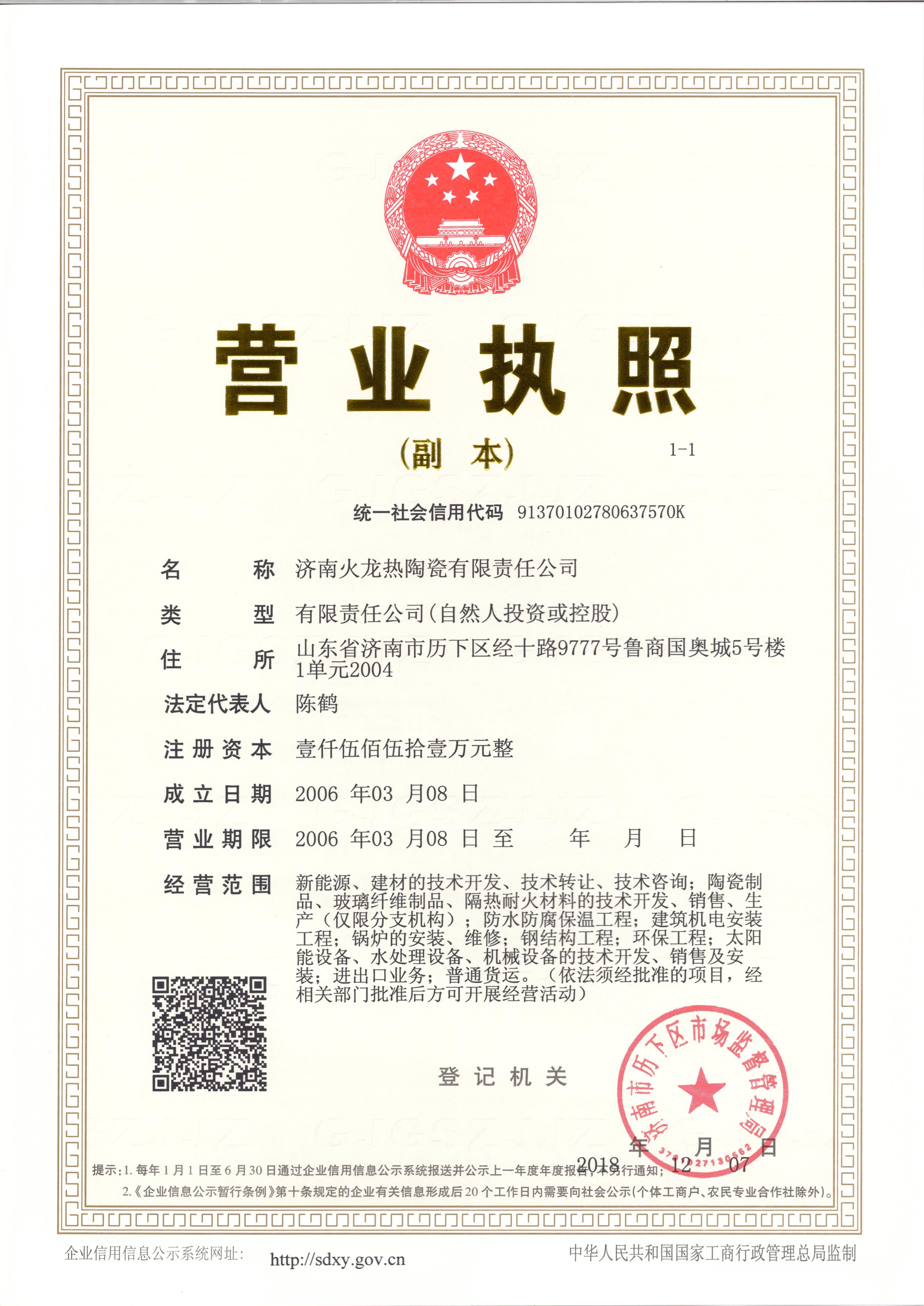 濟(jì)南火龍熱陶瓷有限責(zé)任公司成立于2006年,是陶瓷纖維毯,陶瓷纖維模塊,陶瓷纖維板,陶瓷纖維紙以及納米氣凝膠氈、可拆卸保溫套等耐火材料供應(yīng)商和工業(yè)窯爐等熱工設(shè)備耐火保溫工程承包商。