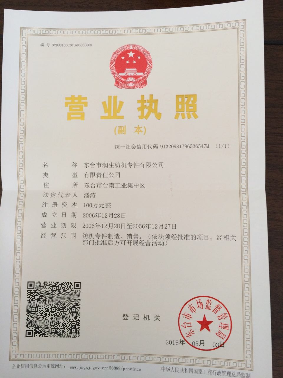 東臺市潤生紡機專件有限公司 紡織通
