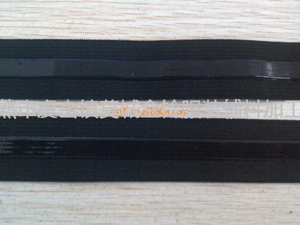 硅膠防滑橡筋帶,硅膠滴膠涂層有透明直線形、波浪形等,主要起防滑作用,美觀、立體手感更佳,同時可有效增強(qiáng)松緊帶的彈性及拉伸性。滴膠牢固,耐洗耐磨,符合環(huán)保標(biāo)準(zhǔn)。
