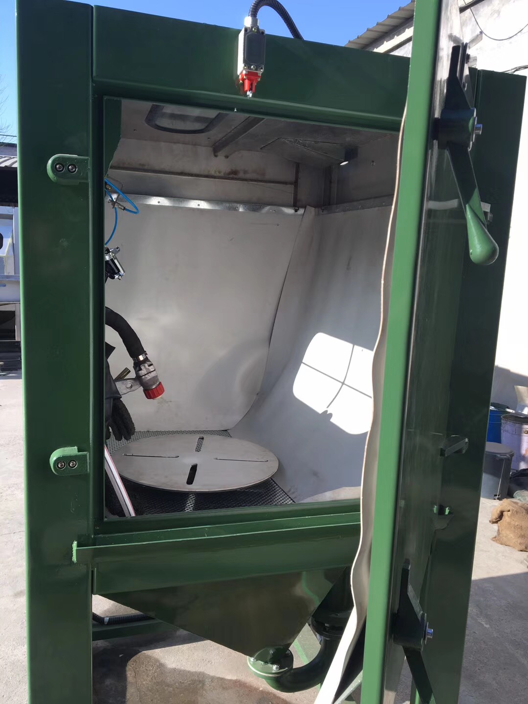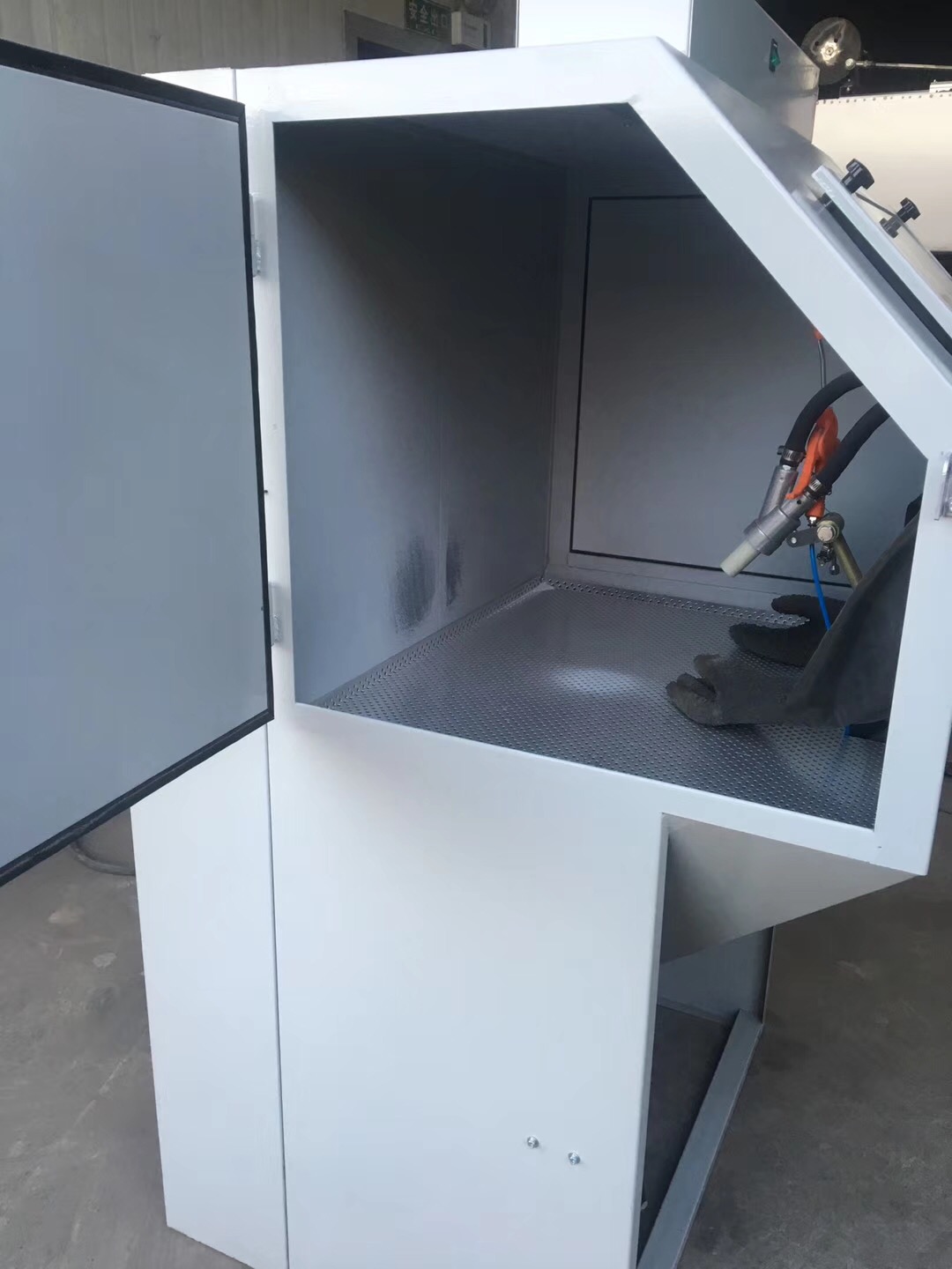 箱式噴砂機是將噴砂系統(tǒng)與箱體防護組合到一起,將噴砂空間控制在一個范圍里,實現(xiàn)沒有粉塵外泄的噴砂狀態(tài)。